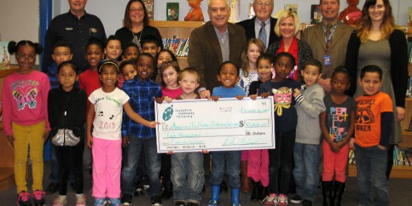 *Pictured Left to Right: Dave McCracken (Bensalem Kiwanis); Deborahlee Johnson (Samuel K. Faust Elementary School Reading Specialist); Ron Bernstein (Executive Director – Foundations Community Partnership); Leland Felt (Angela M. Felt Memorial Fund); Jodie Sauers (Samuel K. Faust Elementary School Principal); Dr. Sam Lee (Bensalem District Superintendent); Lauren Walsh (Faust Librarian); and 1st grade students.