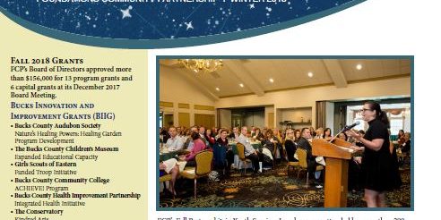 Jan262018Latest NewsFCP News – Winter 2018 Don’t miss important grant cycle dates & deadlines, Professional Education offerings, and the latest news from Foundations Community Partnership! Click below to see the full issue! Category: Latest NewsBy dwdadminis1January 26, 2018Post navigationPreviousPrevious post:Kristine Quinby of Potential Inc and the Springtime SchoolNextNext post:FCP Announces 2018 Partnership in Education Scholarship WinnersRelated PostsFCP Meets this Moment of Need by Increasing Grant SupportOctober 18, 2025FCP Introduces Rapid Response Fund as it Opens Fall Grant Cycle to NonprofitsAugust 29, 2025College Students Spend Their Summer Helping Local NonprofitsAugust 7, 2025FCP Accepts Applications for Semi-Annual Partnership in Youth Services Grant CycleJuly 15, 2025FCP Board Awards Nearly $180,000 to Local Nonprofits as Demand SurgesJuly 2, 2025FCP Awards $25,000 in Scholarships to Outstanding Bucks County StudentsJune 26, 2025