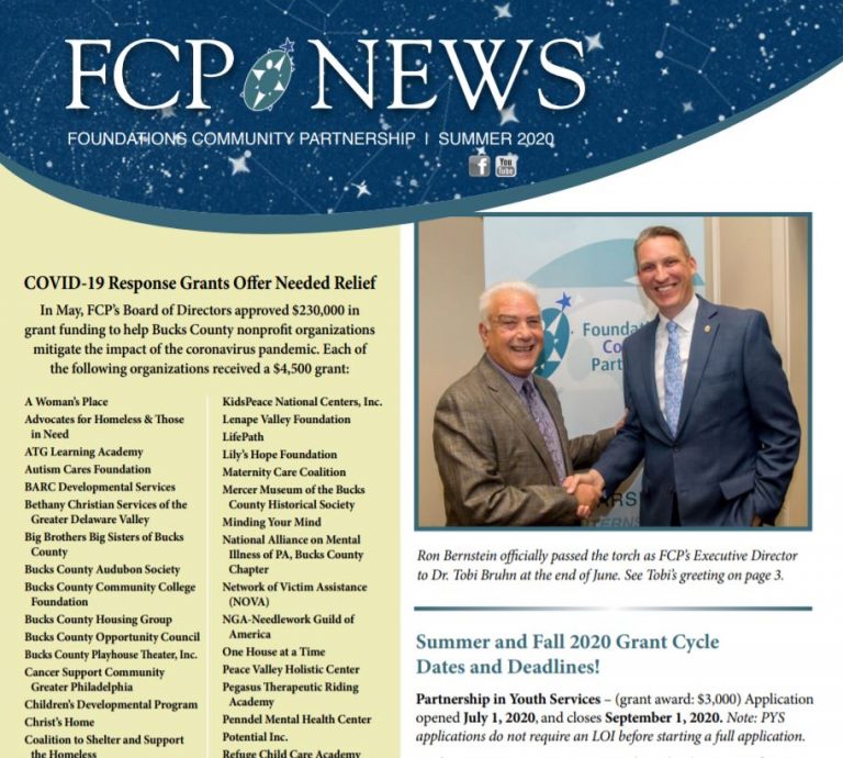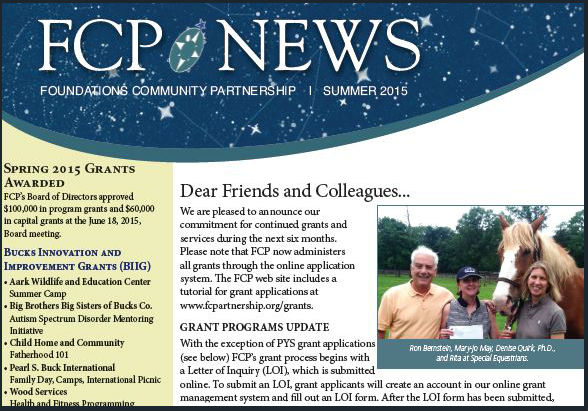 FCP News – Summer 2016 Make note of important grant cycle dates & deadlines, Professional Education offerings, and catch up on the latest news from Foundations Community Partnership!