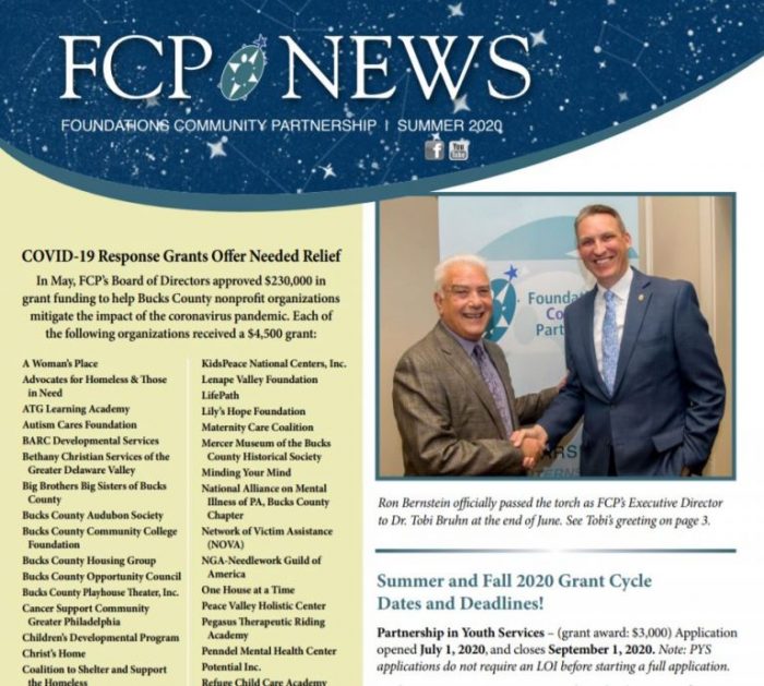 Foundations Community Partnership Board Awards $150,000 in Grants to Local Non-Profits Doylestown, PA (December 29, 2020) – In a continuing effort to give back during this difficult time, Foundation’s Community…